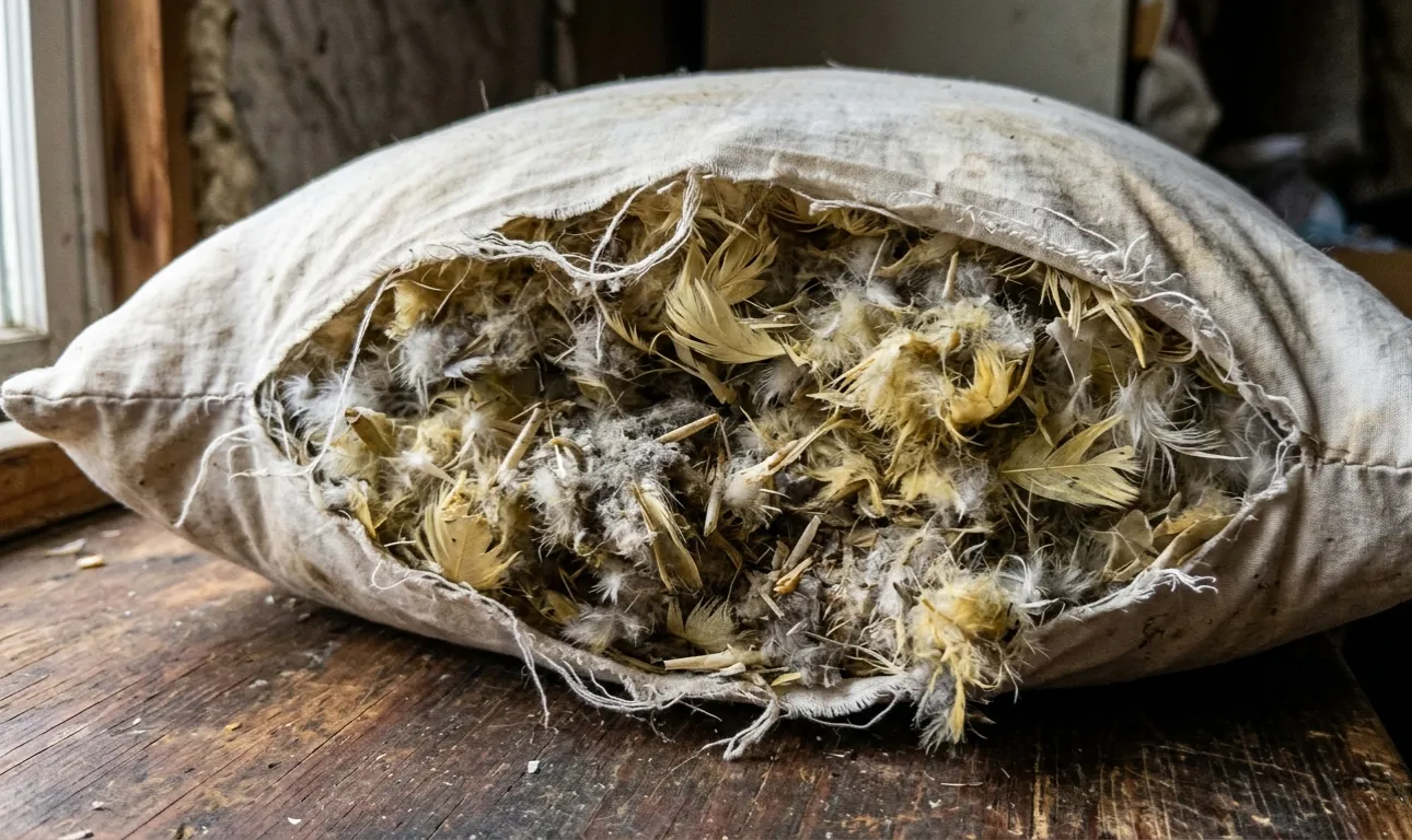 Skrivna niansa: tudi če redno perete prevleke za vzglavnike in zračite posteljo na balkonu, se naravna degradacija perja v gostem polnilu ne ustavi niti za minuto.